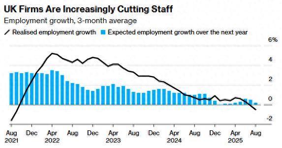 智通财经APP获悉,据英国央行的一项调查显示,英国企业今年夏季裁员速度为四年来最快。该调查表明,英国财政大臣雷切尔·里夫斯首份预算案所带来的影响仍在劳动力市场中持续显现。周四的一项针对首席财务官的调查显示,截至 8 月的三个月里,企业裁员比例达 0.5%,这是自 2021 年以来的最大降幅。企业预计未来一年的员工人数仅会增加 0.2%,这一增速低于此前的预期。
